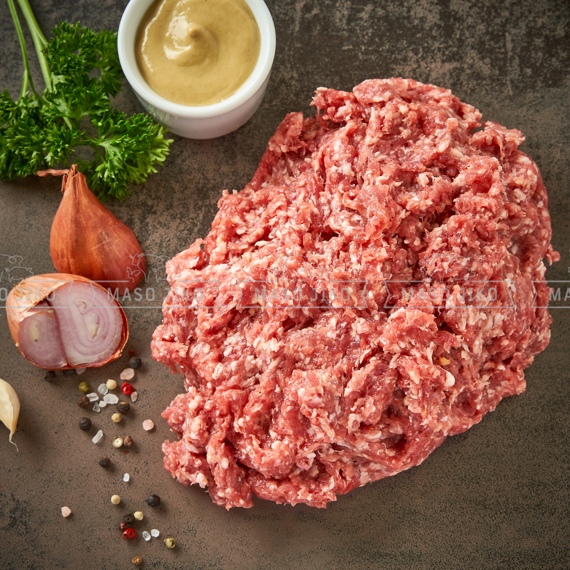 Složení: vepřové maso 45%, hovězí maso 45%voda 10%, kuchyňská sůl,antioxidant E300, červená řepa, regulátor kyselosti: E262,E331. Výživové hodnoty na 100g: energie 975kJ/235kcal, tuky 25g, z toho nasycené mastné kyseliny 7,5g, sacharidy 0g, z toho cukry 0g, bílkoviny 15g, sůl 1,2g. Obsah soli: min.1%, max 2,5%. Před spotřebou důkladně tepelně opracujte.