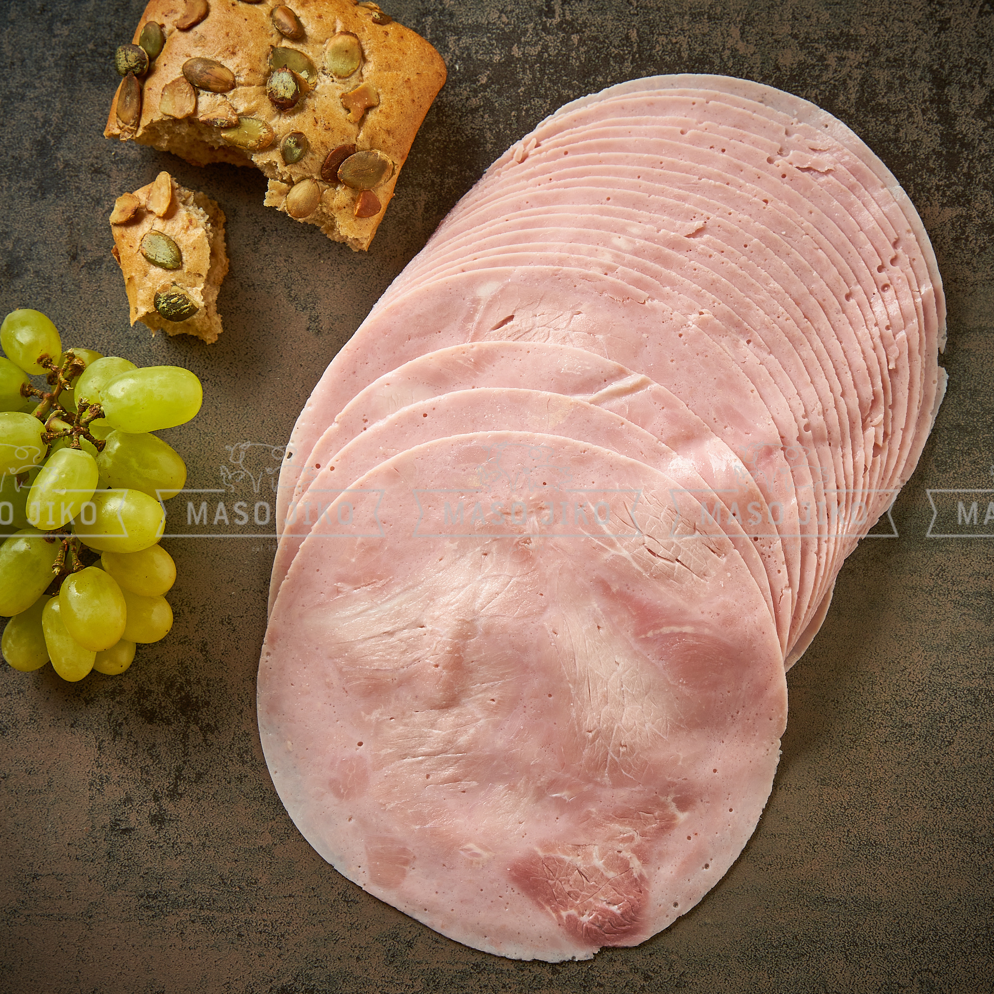 Vepřová kýta 87%,pitná voda,sůl,konzervant:dusitan sodný,stabilizátor:di+trifosforečnan sodný,askorban sodný,karagenan,cukr,extrakty koření, aroma,zvýrazňovač chuti:glutamát sodný. Výživové hodnoty na 100g: energir 673 kJ/161kcal, tuky 12g, z toho nasycené mastné kyselliny 4g, Sacharidy 0,1g, bílkoviny 14g, sůl 1,8g.Třída jakosti: Výběrová.