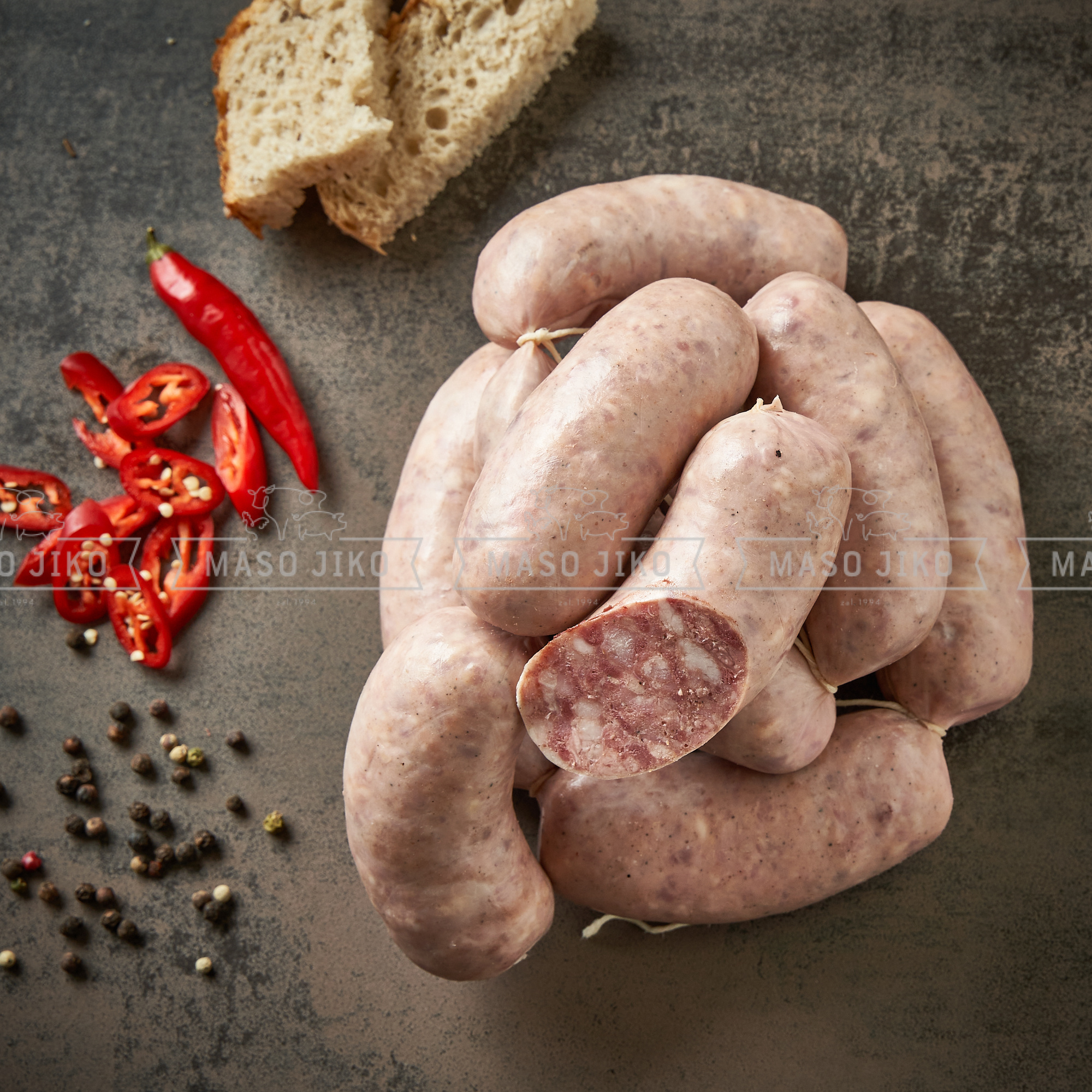 Vepřové maso 40%,hovězí maso 50%,voda,sůl,koření s HOŘČICÍ, extrakty koření,jodičnan draselnýstabilizátor E262, antioxidant E300,kyselina citronová E330, konzervant E250. Výživové hodnoty na 100g: energie 1080kJ/260kcal, tuky 22g, z toho nasycené mastné kyseliny 9,1g, sacharidy 0,4g, z toho cukry 0,2g, bílkoviny 15g, sůl 2g. Obsah tuku:max.40%.Obsah soli: max.2,5%. Po otevření spotřebujte do 24 hodin