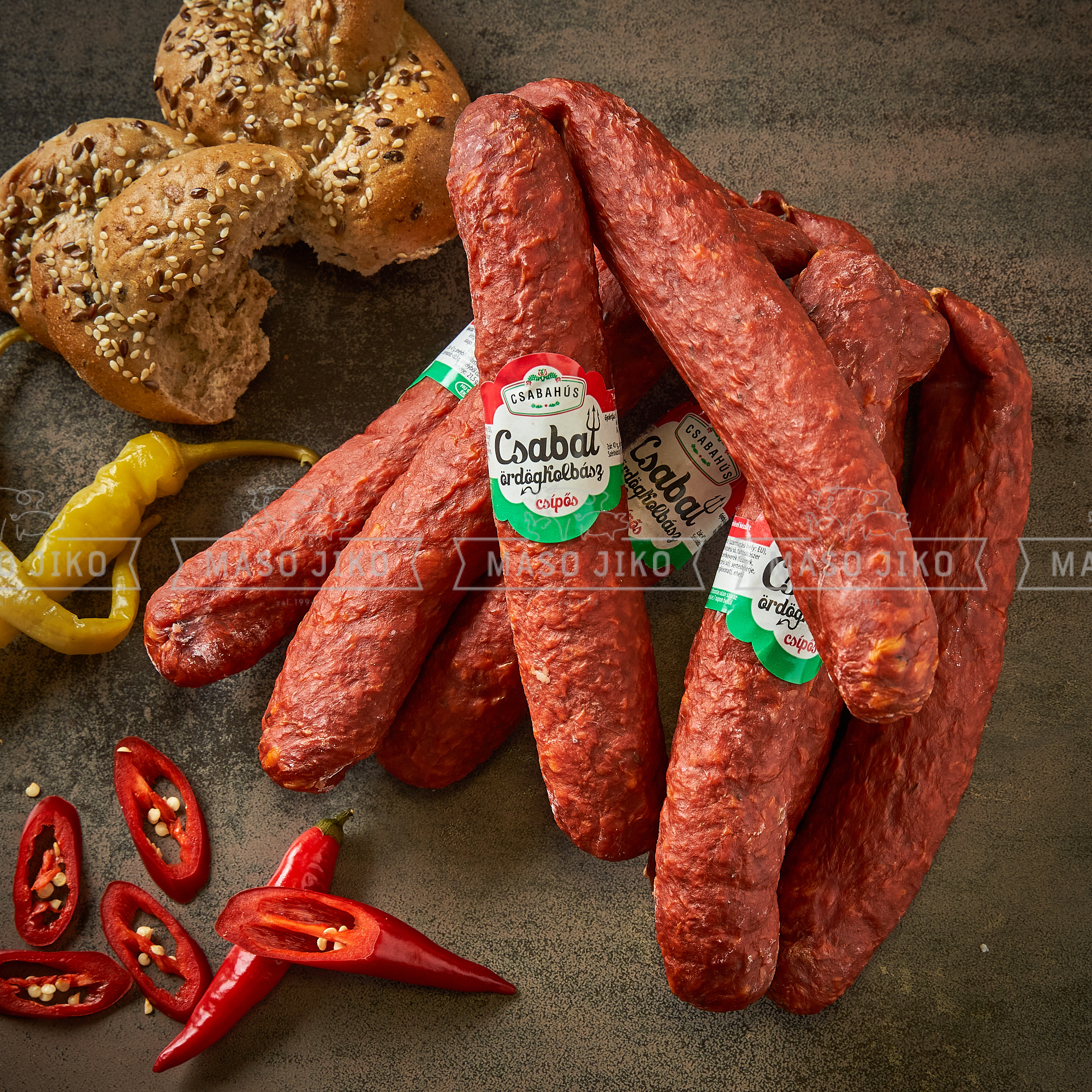 Vepřové maso,vepřová slanina, jedlá sůl, sladká a pálivá paprika, vepřová bílkovina, rostlinná vláknina, koření, barvivo E160c, antioxidant E392, konzervanty E262ii, E250. Výživové hodnoty na 100g: energie 2029kJ/490kcal, bílkoviny 23,18g, tuky 44g, z toho nasycené mastné kyseliny 17,54g, sacharidy 0,4g, z toho cukry 0,4g. Obsah tuku: max. 50%. Obsah soli: max. 5%.