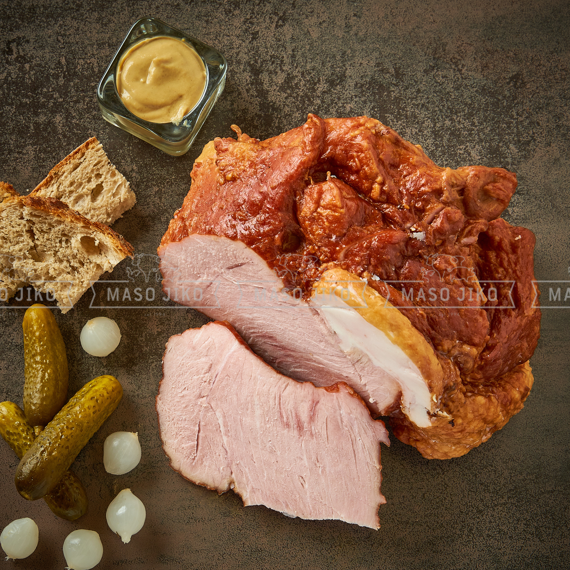 Vepřové.ocásky 82%,voda,jedlá sůl, konzervant, E250, stabilizátor E450, E451, zahušťovadlo E407, regulátor kyselosti E331, extrakty koření, jodičnan.draselný, antioxidant E316, dextroza, modifikovaný kukuřičný škrob E1420, barvivo E120, přírodní aroma. Výživové údaje na 100g: energie 1134kJ/271kcal, tuky 24g, z toho nasycené mastné kyseliny 6,7g, sacharidy 1g, z toho cukry 0,2g, bílkoviny 14g, sůl 2g. Obsah tuku max. 30%. Obsah soli max. 3,5%.Po otevření spotřebujte do 48 hodin.